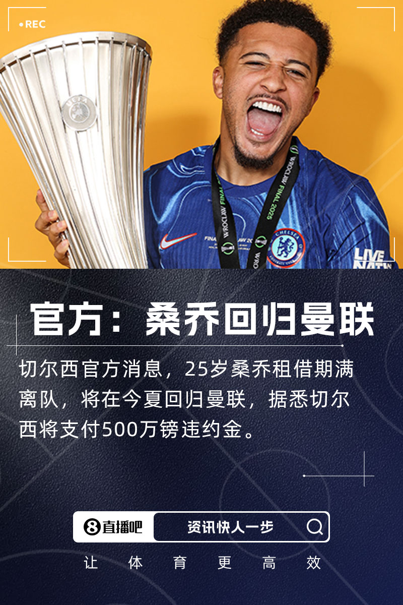 切尔西发布官方公告,确认桑乔租借期满将离开球队,并重返曼联。